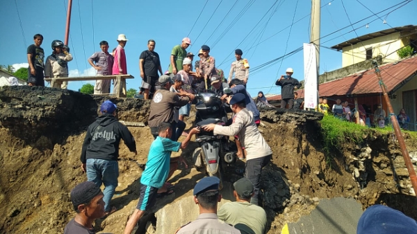 Tim Brimob Polda Jabar sigap mengerahkan personel untuk membantu warga, terutama pejalan kaki dan pengendara sepeda motor yang harus menyeberang di titik jembatan yang terputus. Dengan strategi pengamanan yang matang, anggota Brimob berjibaku di medan sulit demi keselamatan masyarakat.