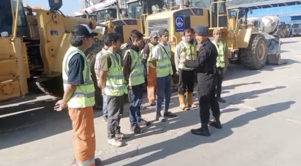 Sambangi Pekerja Kereta Cepat, Personel Brimob Jabar Ingatkan Kamtibmas