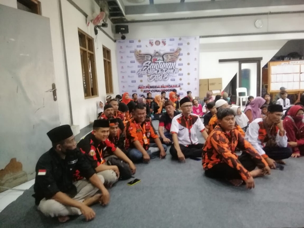 Cimanggung –Sebagai wujud peduli sesama sekaligus mengimplementasikan indahnya hidup berbagai, Pimpinan Anak Cabang Pemuda Pancasila Kecamatan Cimanggung kembali menggelar acara santunan anak yatim dan dhuafa serta buka puasa bersama, di Aula Desa Sindangpakuon Kecamatan Cimanggung Kabupaten Sumedang Selasa (25/3).