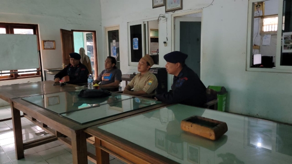 Cirebon- Anggota patroli kompi 4 batalyon C pelopor Satbrimob Polda Jabar Dpp Brigadir Sugiri Wahono melaksanakan patroli Dialogis Ke kantor Desa Winong kecamatan gempol Kab. Cirebon.sebagai Bakti brimob untuk masyarakat